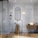 Wyrazista czerń i złoto: Dla miłośników wyrafinowanej elegancji nie ma lepszego duetu. Złota armatura i kryształowe oświetlenie podkreślą luksusowy charakter marmuru, podczas gdy czarne profile kabiny prysznicowej i matowe dodatki dodadzą mu nowoczesnego pazura.